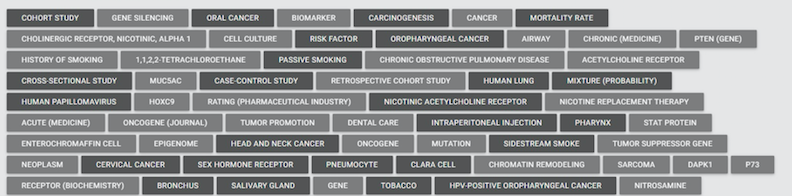 Hand tagging text is not feasible for large document collections. Intellisophic’s Deep Meaning AI algorithms automatically tags text documents. The tags are concepts contained in the taxonomies we provide. An example from a medical text: